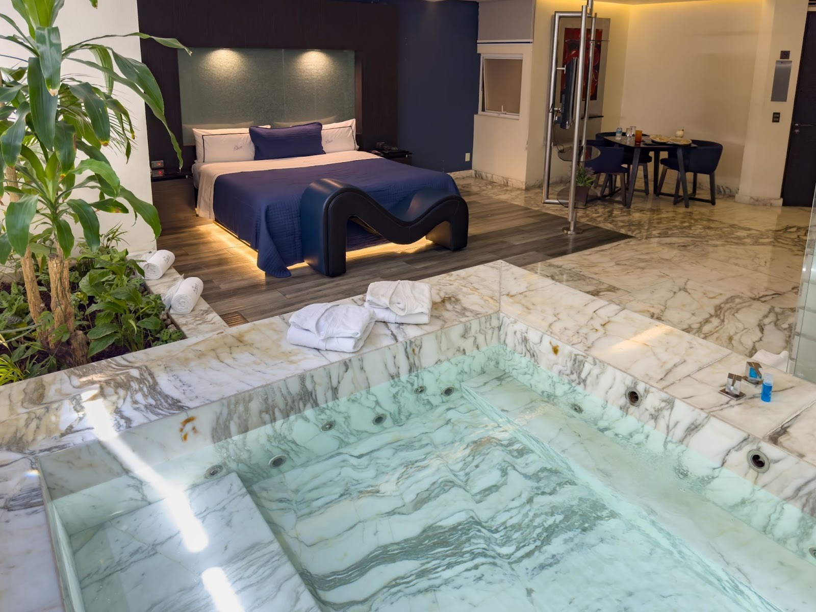 - Jacuzzi, sauna o alberca privada, ideales para generar comodidad y confianza entre parejas.